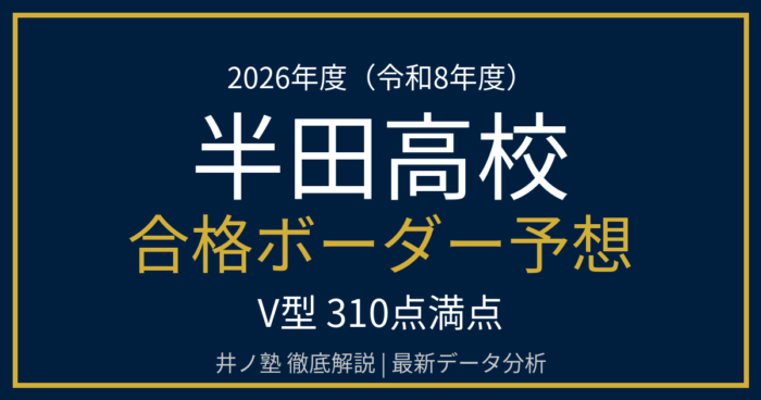 このスコアは、愛知県の「Ⅴ型(内申点 × 2 + 当日点 × 2 = 310点満点)」に基づいた数値です。半田高校は第1志望者が非常に多く、このボーダー付近に多数の受験生がひしめき合います。