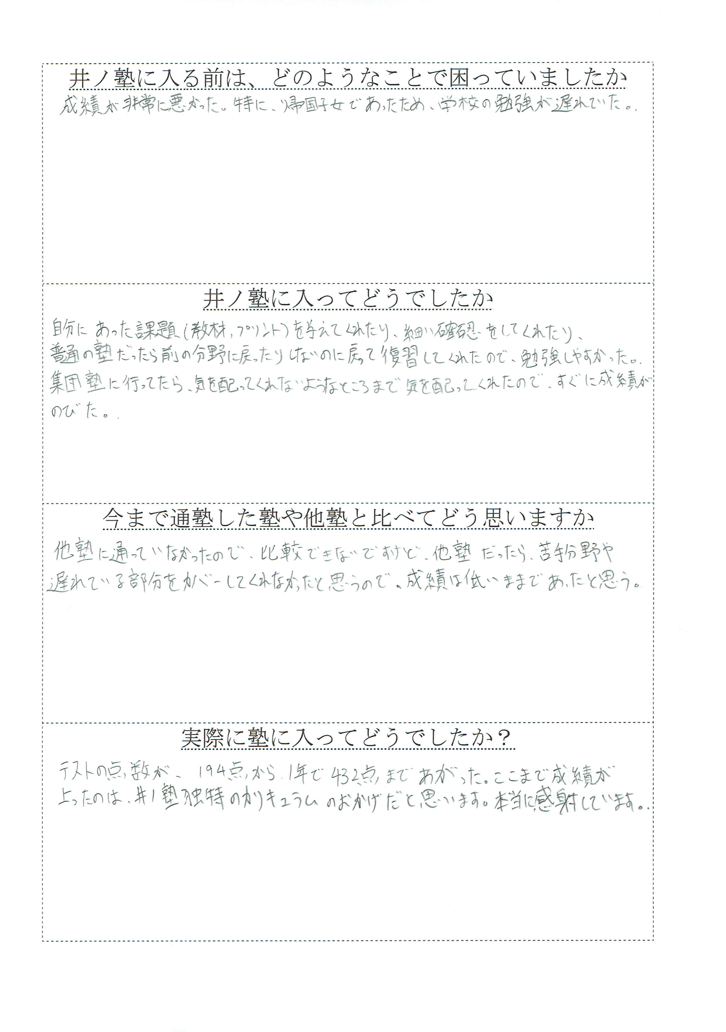 - 11年間で110人以上の学年1位・クラス1位を輩出